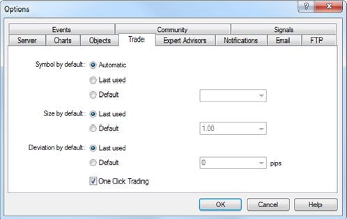 - Mark ‘One-Click Trading’ at the bottom of the screen