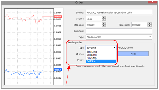 Note: Select a price level higher than the current price if you want to place ‘Buy Stop’ or ‘Sell Limit’ orders. Conversely, select a price level lower than the current one if you want to place a ‘Buy Limit’ or ‘Sell Stop’ order.