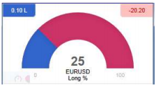 The Sentiment Trader shows the current long/short sentiment (25% long in the following example), and a chart of historic sentiment plotted against price action. In the example below, sentiment has remained consistently below 50%, i.e. a majority of traders have been short EURUSD.