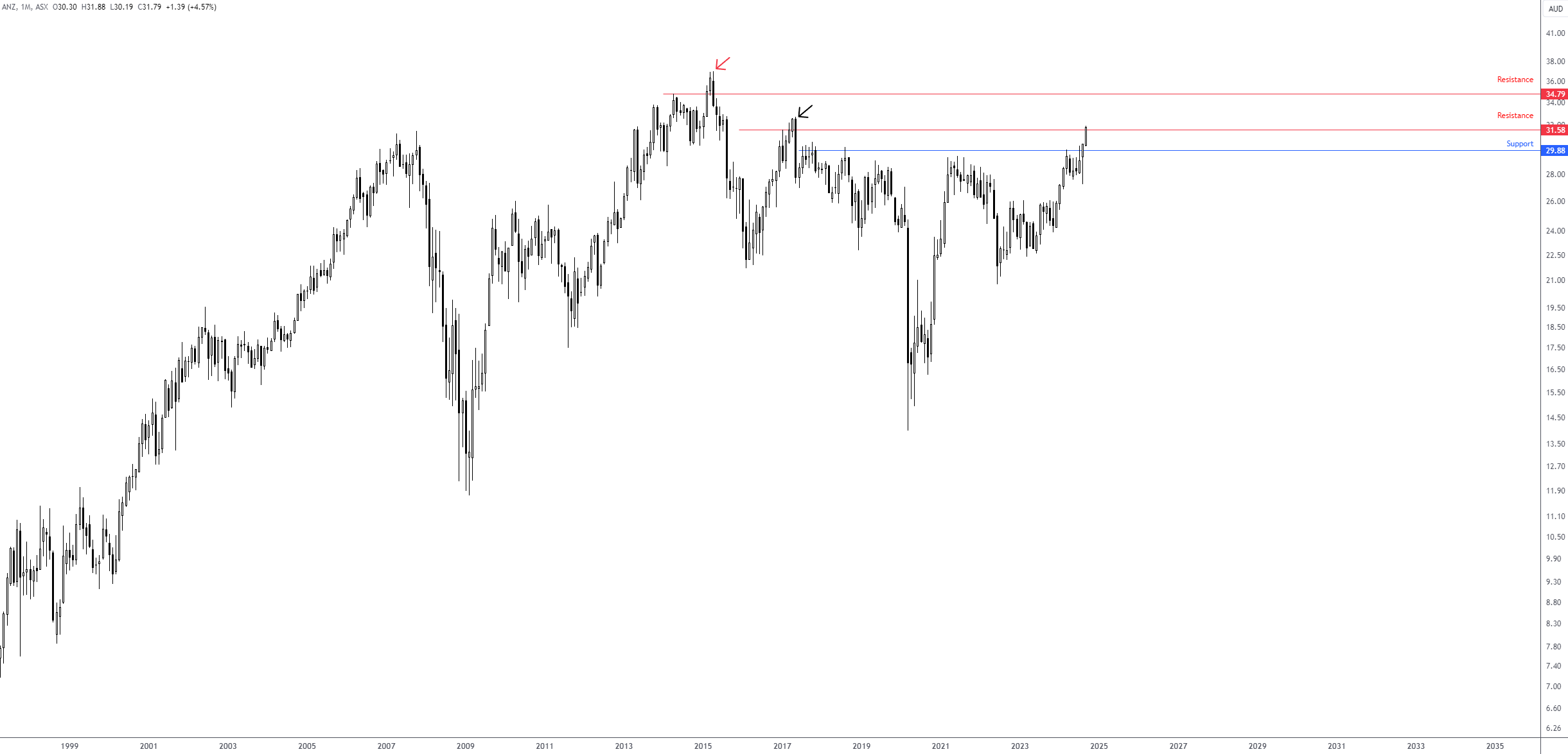 Australia and New Zealand Banking Group Limited (ANZ) Stock Price Chart